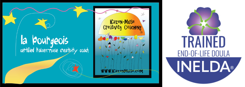 I’m LA (as in tra-la-la) Bourgeois, KMCC-certified creativity coach, writer, editor, and end-of-life doula empowering you to think differently and unlock your creativity to do whatever you want to do.