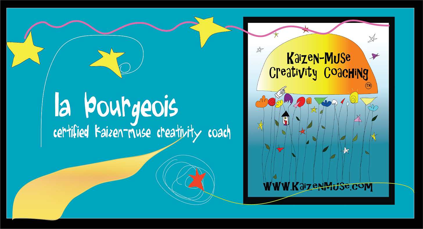 I'm LA (as in tra-la-la) Bourgeois, Kaizen-Muse Certified Creativity Coach